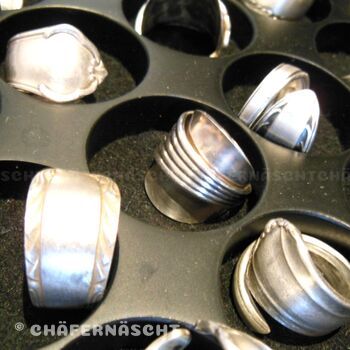 Der absolute Hingucker! Fingerringe aus Besteck. Garantiert jeder Ring ein Unikat!Auch dazu passende Armspangen sind erhältlich.